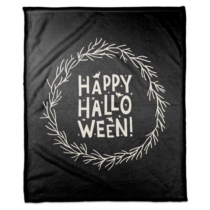 Designs Direct Happy Halloween Wreath Throw Blanket In Black Bed