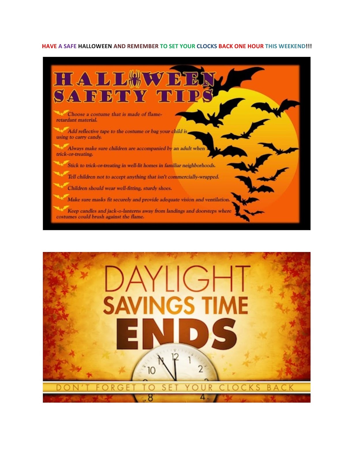 Burton Isd Halloween Safety Tips Daylight Savings Reminder