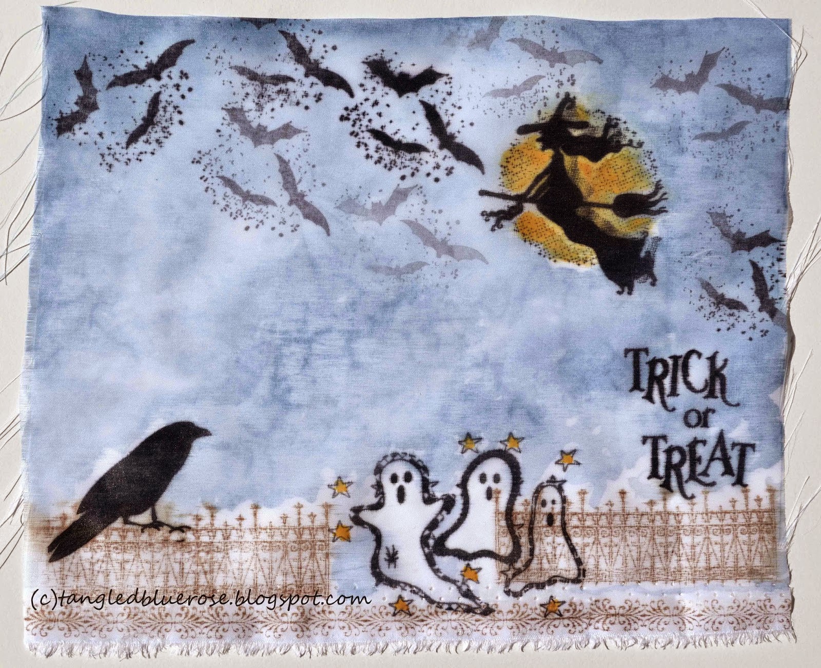 Mixed Media Mojo Halloween Fabric Stamped Panel Wednesday October 22